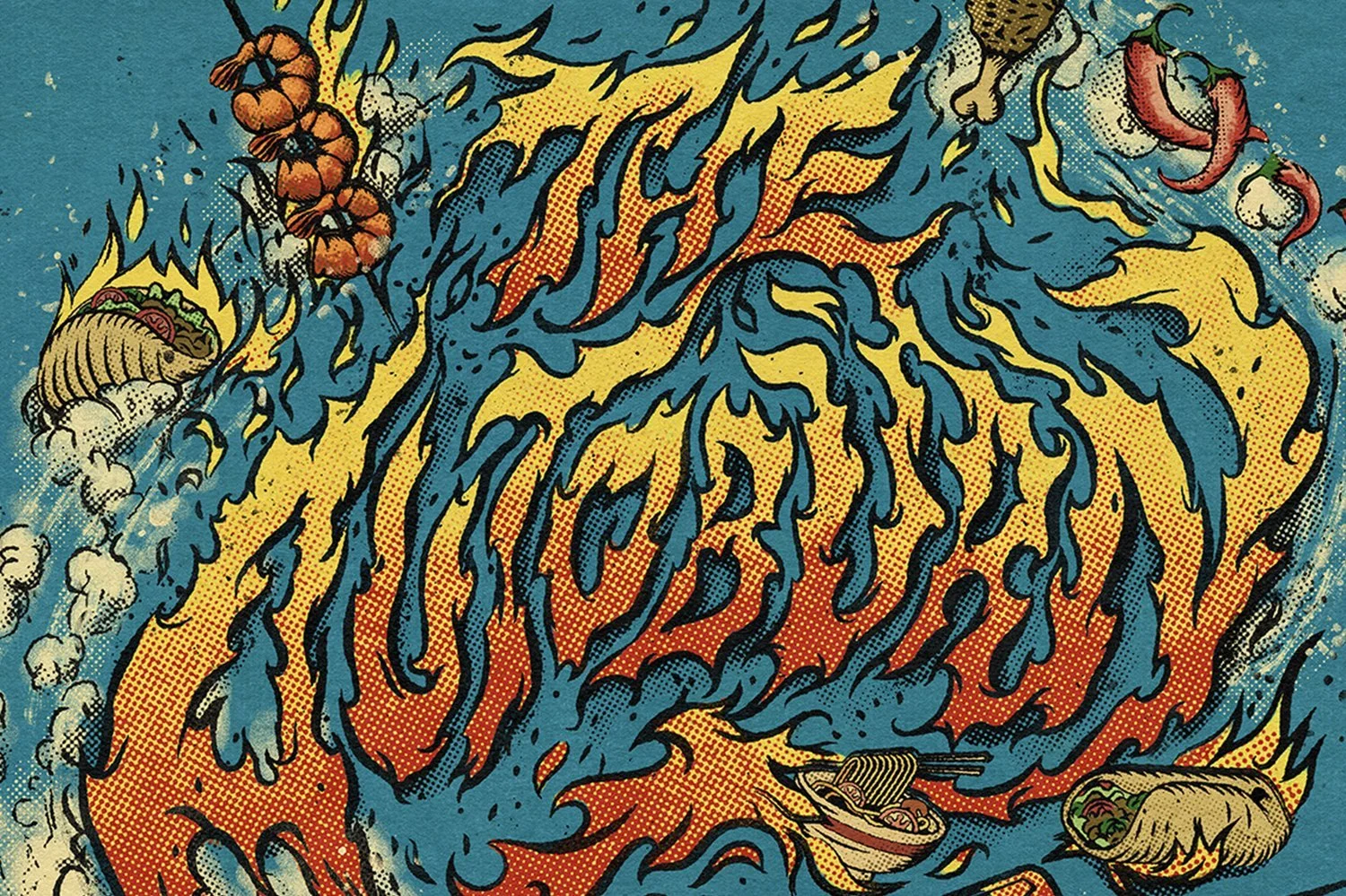 We partnered with Sean Evans (Hot Ones) to map out America’s spiciest road trip, challenging people to try the hottest dishes we could find. Alex Trochut crafted our road map and posters, bringing the gorgeous spicy hellfire of each dish to life.